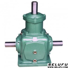 T齿轮转向箱又名T齿轮换向器、伞齿轮转向器,是一种动力传达机构,是减速机中的一个系列,在工业领域有很广泛的应用。转向箱目前已经实现了标准化和规格多样化。转向箱有单轴、双横轴、单纵轴,双纵轴可选。速比1:1、1.5:1、2:1、2.5:1、3:1、4:1、5:1全部为实际传动比。转向箱可以正反运转,低速或高速传动平稳。转向箱当速比不是1:1时,横轴输入、纵轴输出为减速,纵轴输入、横轴输出为增速。
