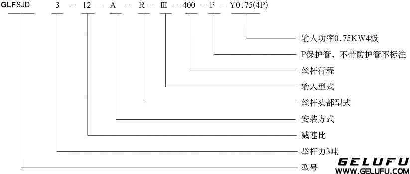 C型——丝杆向上移动不旋转 F型——丝杆旋转螺母向下移动