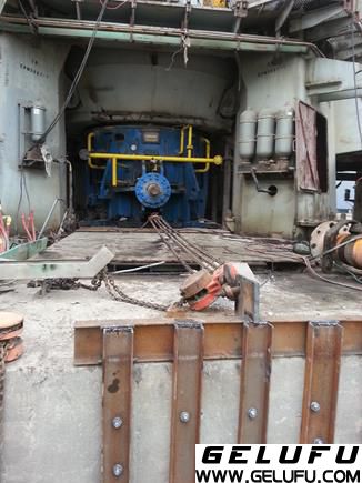 清理压盖上面的油污,拆卸内六方固定螺栓(用M19、M22的内六方扳手),共12个,放置妥当。用吊车依次吊出5个定位销(M20吊环),吊出前制作清晰的标记,并放置妥当。接着吊出压盖(用2个M30的吊环)。