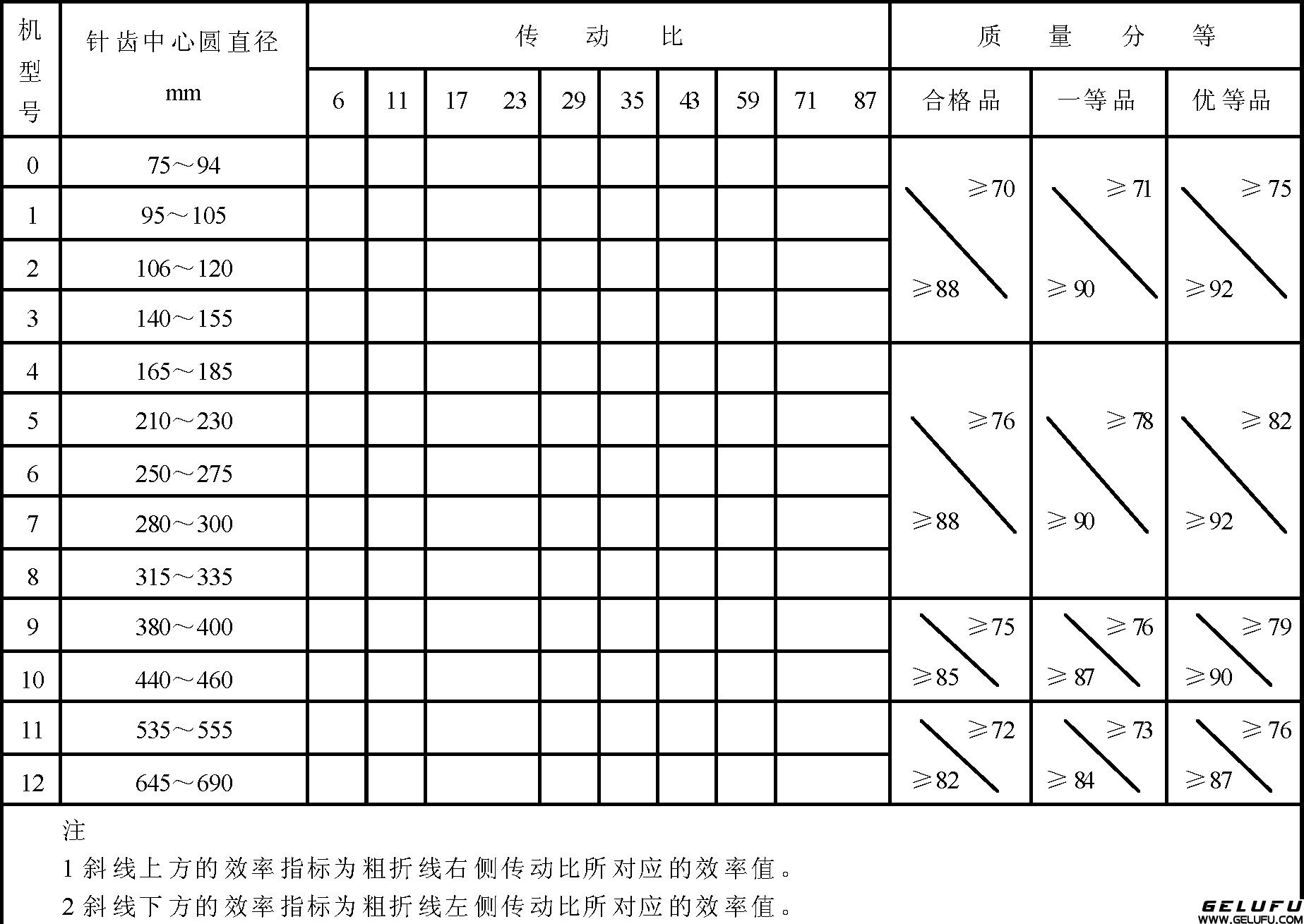 6.2产品定等检测 抽样,要求所提供的同一机 型号减速机样机的 传动比规格应不少于三种,且大、中、 小 传动比兼顾,每种 传动比的样机台数应不少于三台, 抽样时,每种 传动比各抽两台。定等产品复查及 一般检查 抽样抽取样机总台数应不少于两台,其 传动比规格根据实际情况而定。