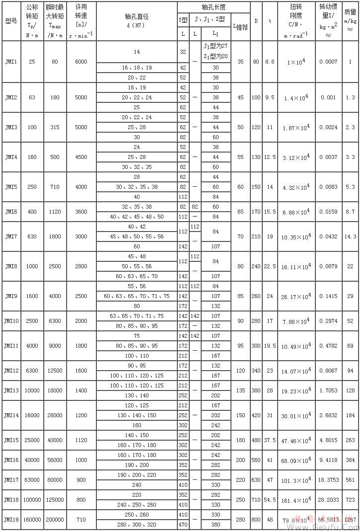 JMIJ膜片联轴机基本参数和主要尺寸(JB/T9147-1999)