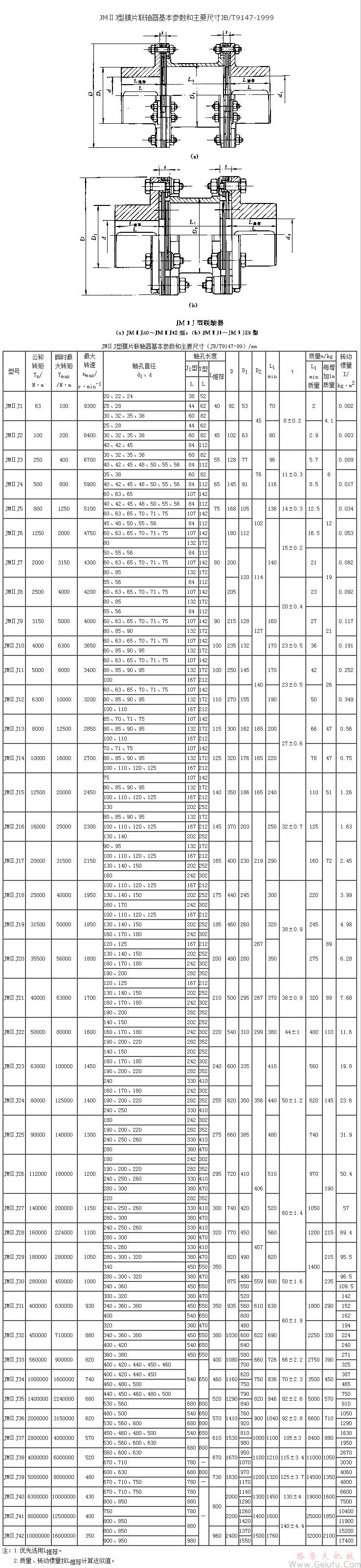 JMⅡ膜片联轴机基本参数和主要尺寸(JB/T9147-1999)
