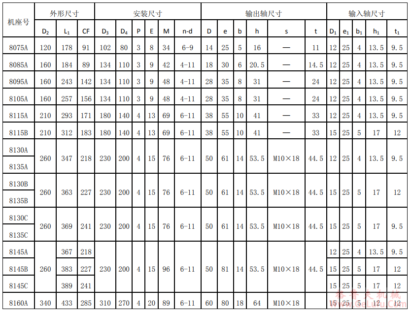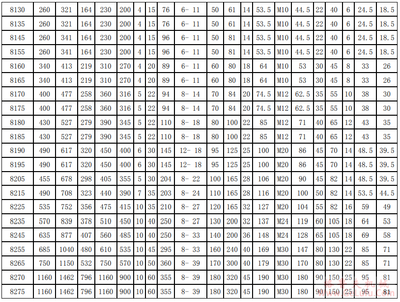 X8000系列天减标准:8075、8095、8105、8115、8125、8130、8135、8145、8160、8165、