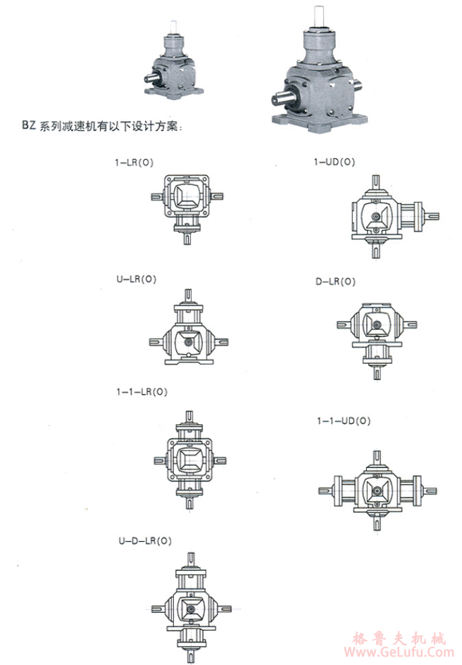 BZ系列螺旋锥齿轮转向箱轴配置及旋转方向的关系