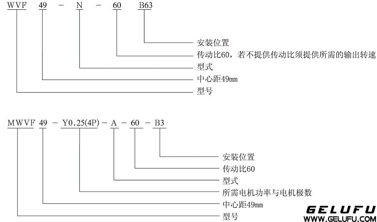 本係列中心距:27、30、44、49、63、72、86、110、130、150、185mm共十一種,中心距用mm表示。