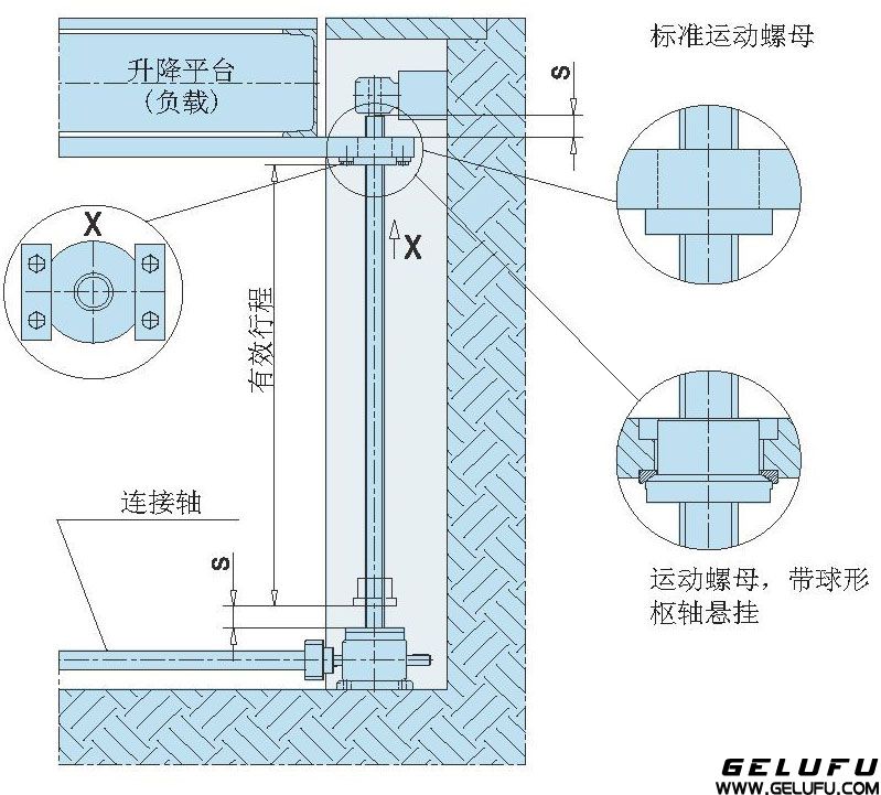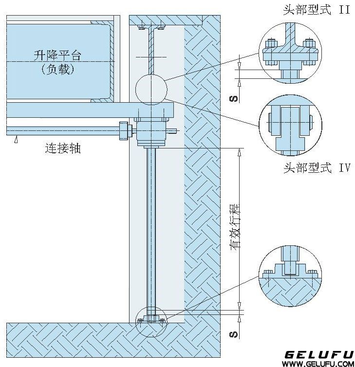 適用於重載長絲杠拉伸載荷設計:結構形式1 裝有爬升絲杠(無保護管)