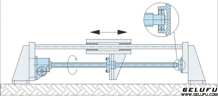 壓縮/拉伸載荷絲杠導向裝置現場安裝,如果絲杠保持力不足,根據歐拉狀態II設計尺寸。 否則,根據歐拉狀態III設計:結構形式1 帶夾緊絲杠和直線橫動驅動軸。