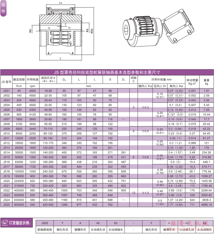 JS型蛇形彈簧聯軸器簡介: