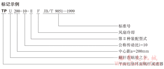 TPU平麵包絡環麵蝸杆減速機型號與標記示例