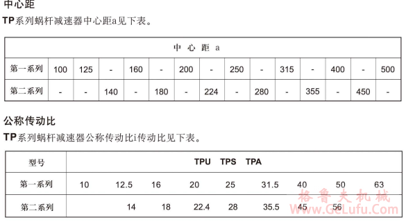 TPU平麵包絡環麵蝸杆減速機中心距及速比: