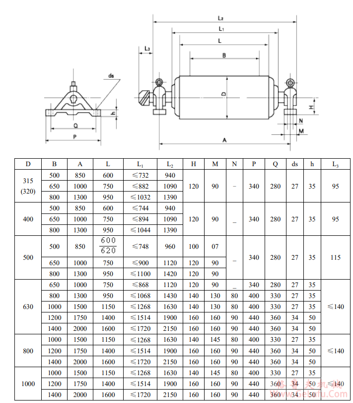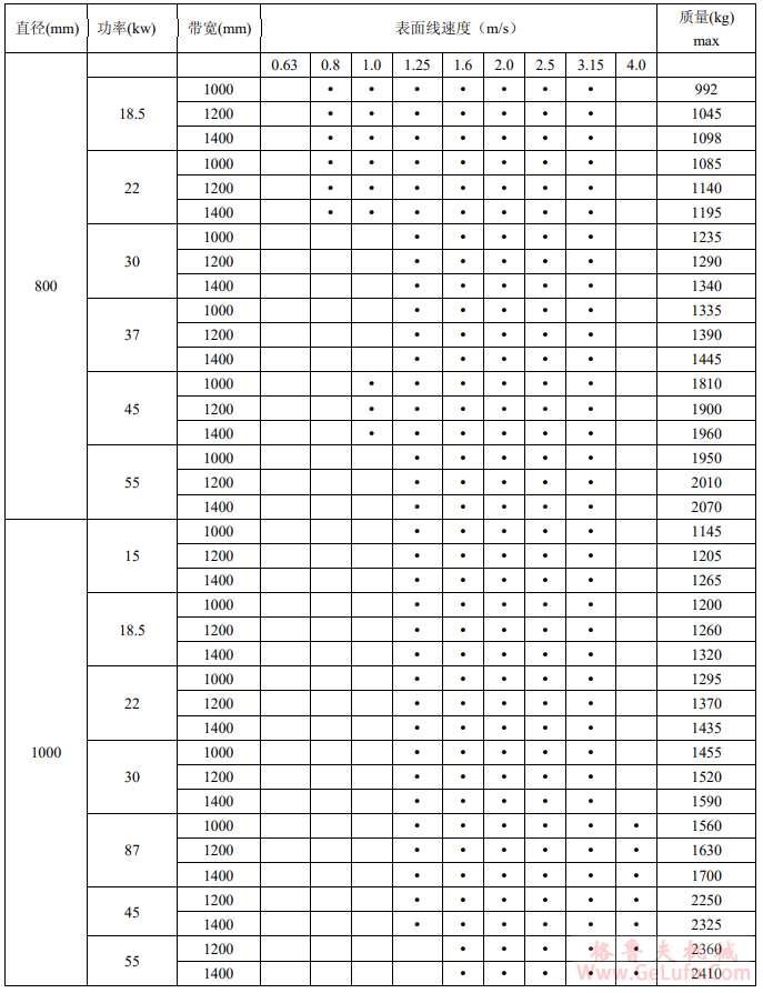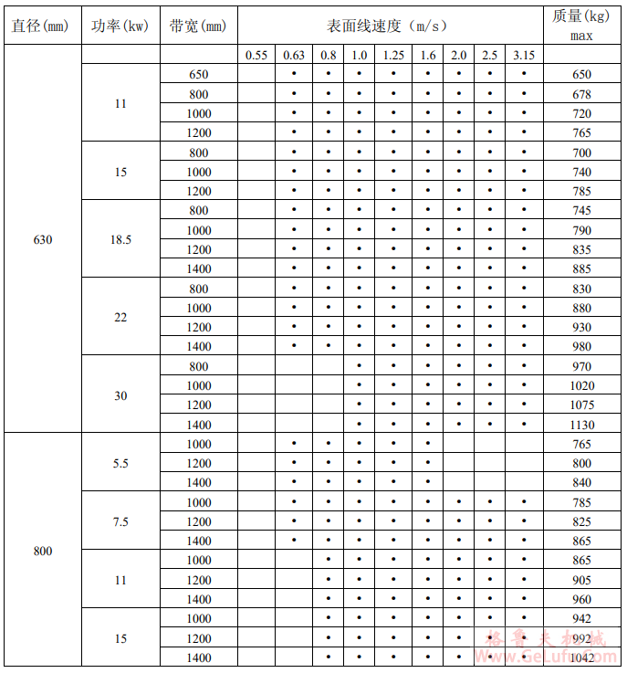 式中:M——扭矩(Nm)D——滾筒直徑(m)P——功率(KW)V——帶速(m/S)