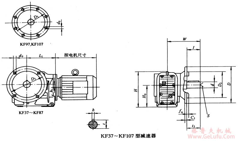 (5)KF37~KF107型減速機主要尺寸見下圖和表。