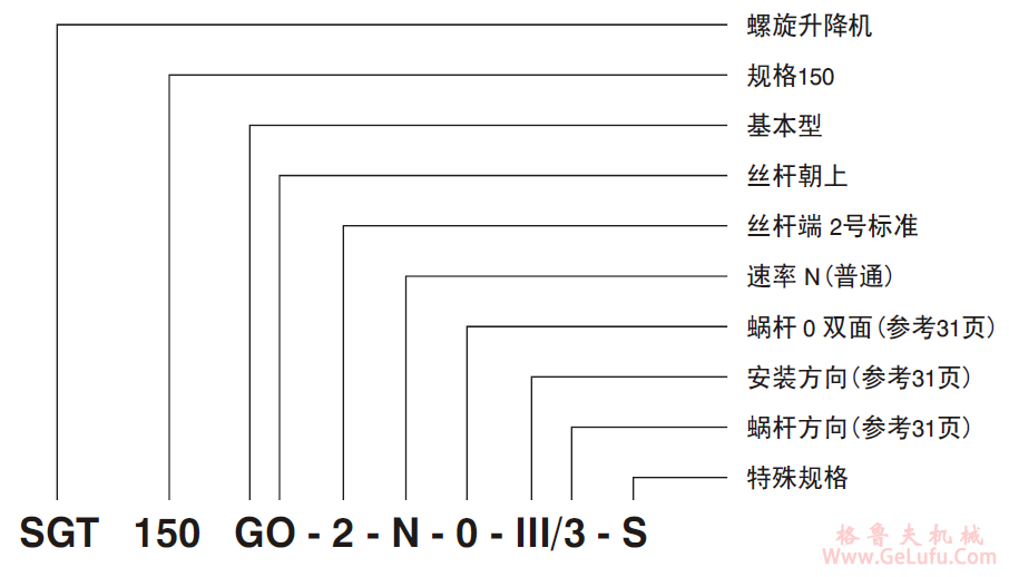 格魯夫SGT係列蝸輪蝸杆螺旋絲杆升降機型號標示