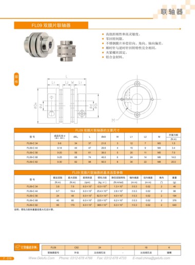 FL09 双膜片联轴器的基本选型参数