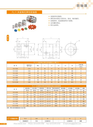 FL11 夹紧梅花弹性联轴器的基本选型参数
