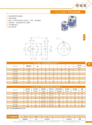 FL12 定位十字滑块联轴器的主要尺寸 F