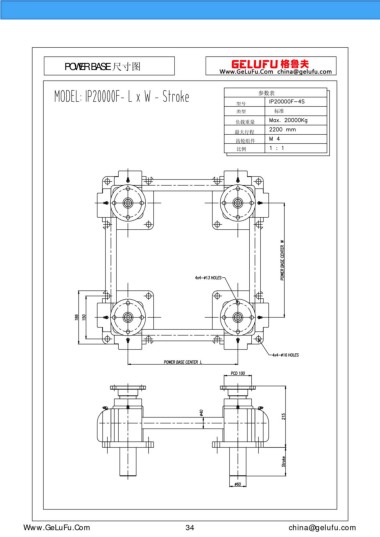 POWER BASE 尺寸图 参数表 型号 类型 标准 负载重量 最大行程 齿轮组件 比例 Www.GeLuFu.Com 34 china@gelufu.com