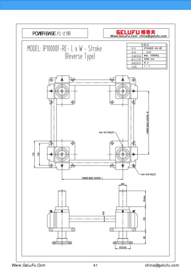 POWER BASE 尺寸图 参数表 型号 类型 标准 负载重量 最大行程 齿轮组件 比例 Www.GeLuFu.Com 41 china@gelufu.com