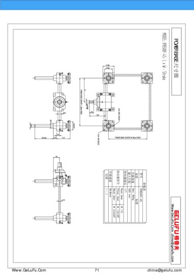 POWER BASE 尺寸图 标准 Www.GeLuFu.Com 71 比例 升降速度 转向器型号 转向器速比 最大行程 负载重量 类型 型号 参数表 china@gelufu.com