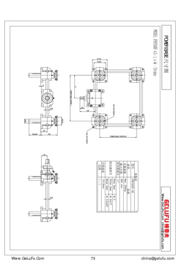 POWER BASE 尺寸图 标准 Www.GeLuFu.Com 73 比例 升降速度 转向器型号 转向器速比 最大行程 负载重量 类型 型号 参数表 china@gelufu.com