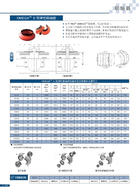 奥米伽联轴器 最大孔径 最小孔径 额定 ① 扭矩 ① 转速 A B C D E F 重量 kg