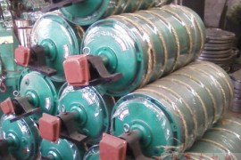 4.3.2.2 将滚筒拆开,其步骤是:将左法兰轴端接线盒及左支座和左端盖螺栓拆下,再将右端盖螺栓及右支座拆下,用吊环吊起右法兰轴就可吊出。